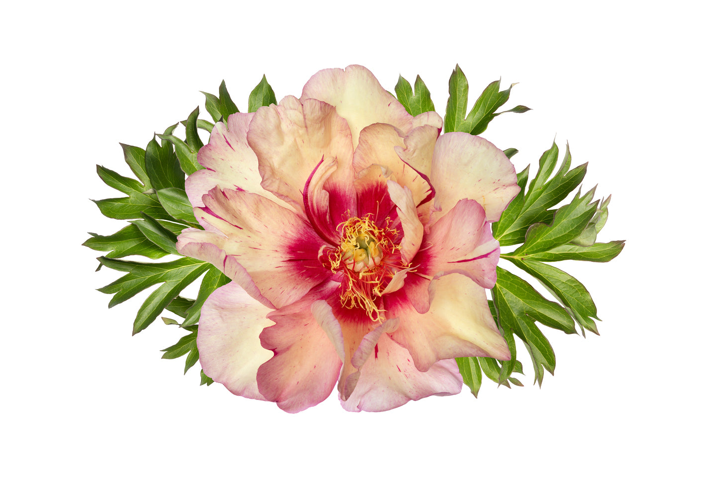 Bring warmth and refinement to your garden with the Itoh peony Callies Memory. Its generous semi double blooms open in creamy yellow with a soft hint of peach and a deep red glow at the heart then mellow to pastel apricot and blush pink so a fresh color accent appears each day. Silky petals and a light fragrance add a luxurious feel while strong stems hold the flowers neatly upright which makes it excellent as a cut flower too. This peony is easy to care for fully hardy and happiest in a sunny spot or light partial shade in well drained fertile soil. Ideal for stylish borders elegant beds and statement containers on terrace or patio. Order Callies Memory today and enjoy season after season a calm yet captivating play of color.
